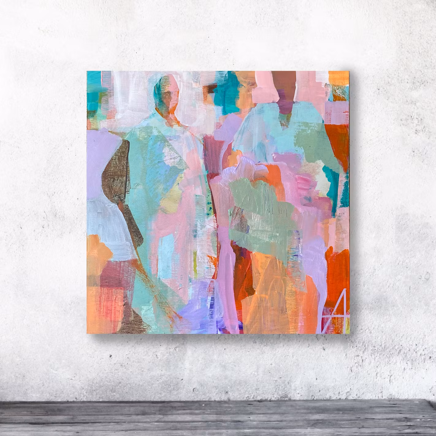 Akrylmålning på träpannå. Mått 40x40 cm.