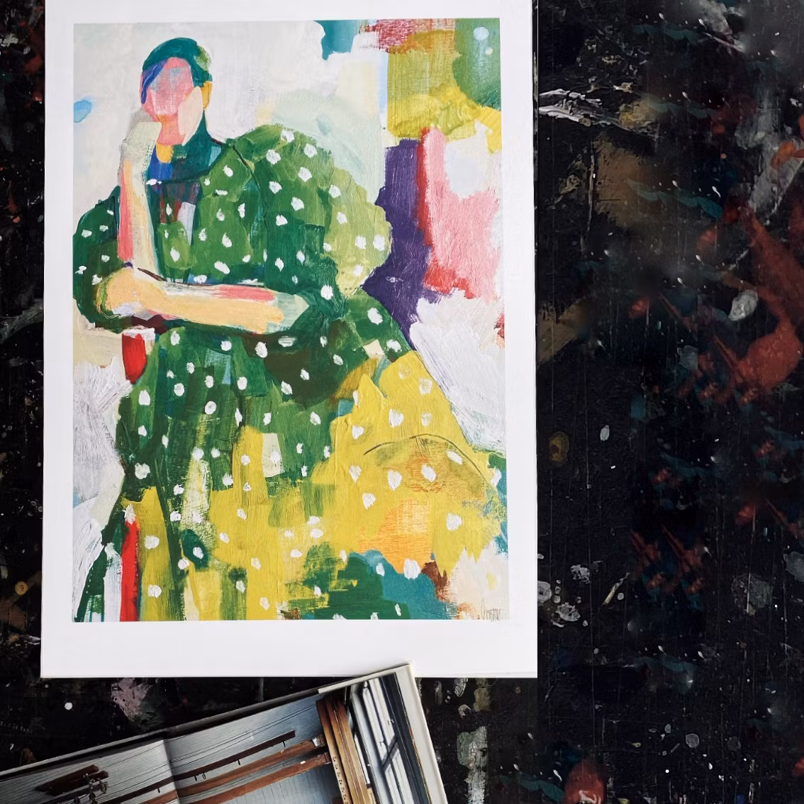 Print från originalmålning i akryl återgivet på ett vitt ljusbeständig papper med en sidenmatt yta